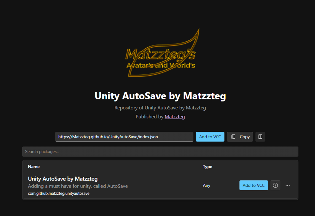 U get a Link to add my Script to the VRChat Creator Companion and a Link to my Unitypackage